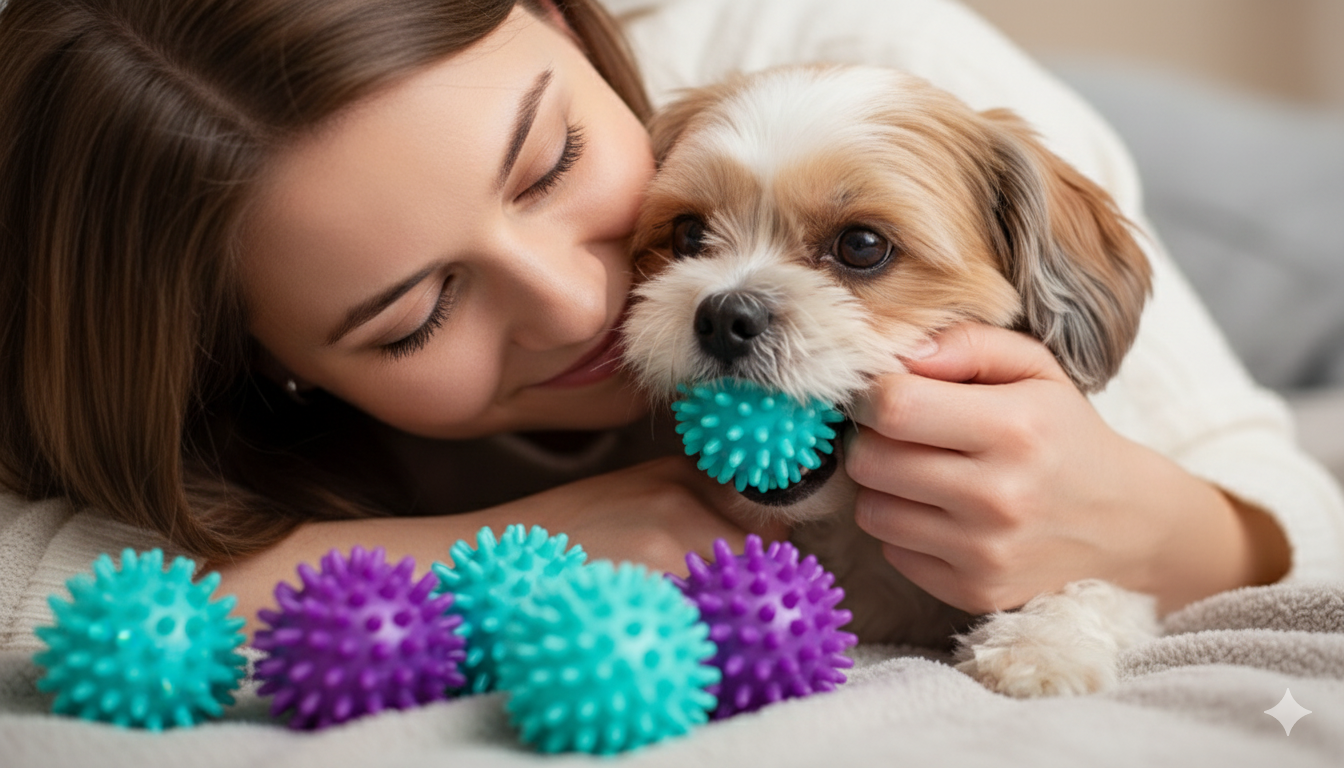 Petite Paws Spiky Dog Ball Squeaky Toy for Small Dogs Aggressive Chewers Puppy Teething Toys Dog Spike Ball for Training and Teeth Cleaning